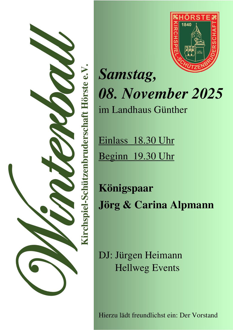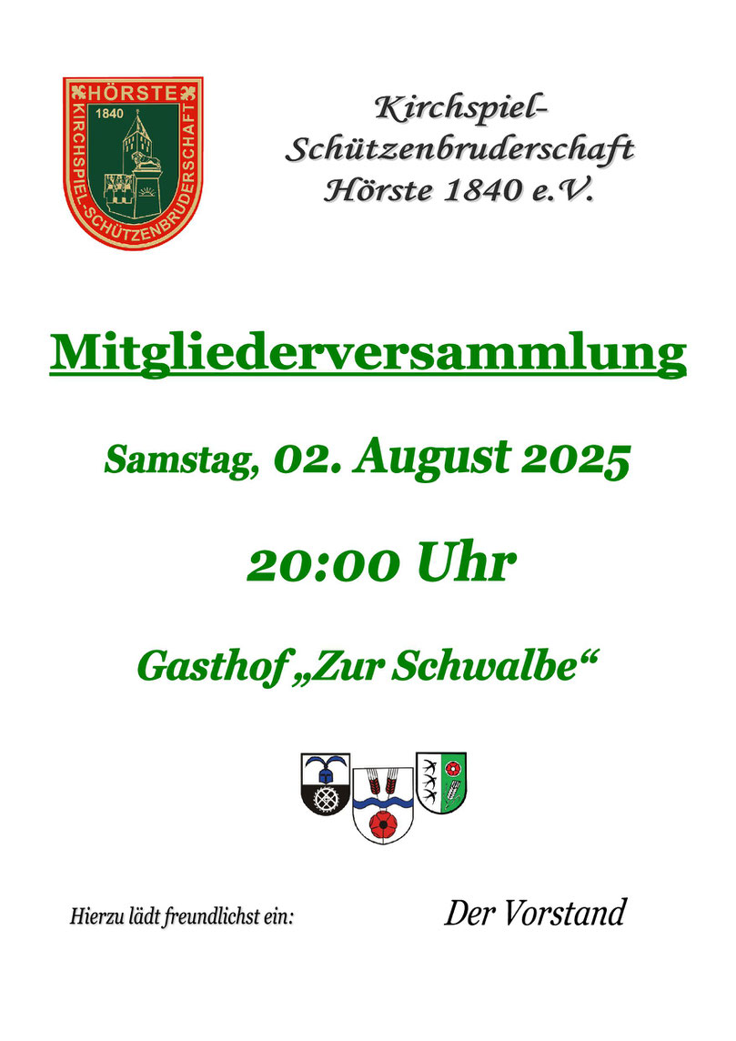 Am 22. März traf sich die Kirchspiel-Schützenbruderschaft Hörste zur diesjährigen Generalversammlung im Landhaus Günther.